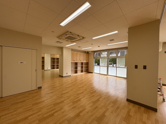 「長門児童館」、「長門悠々館」の内部の天井、壁、床、窓などを全面的に新しくしていきます。