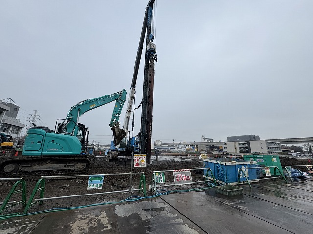 現場に建設機械が入り、既存杭の撤去工事が始まりました。